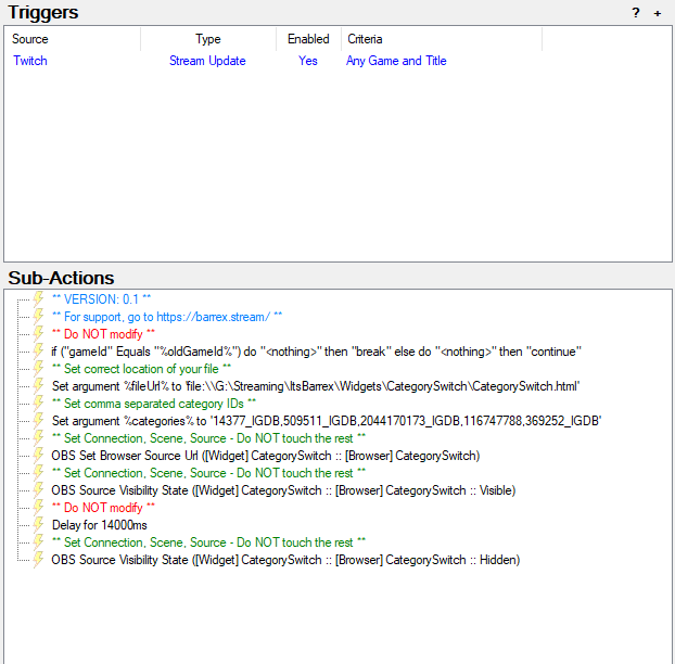 Wenn du die Szene und die Quelle gleich benannt hast wie ich, so sollte bei diesen SubAction das ganze wie folgt aussehen bei dir: