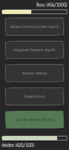 Das rundenbasierte Kampfsystem, liess abwechselnd die Fraktionshelden und den Boss angreifen. Den Teilnehmern stand eine breite Auswahl an Möglichkeiten zur Verfügung – von mächtigen Angriffen über Schutz- und Heilungsoptionen bis hin zu geheimnisvollen Mystery-Attacken. Besonders spannend waren die Statuseffekte, die durch bestimmte Attacken ausgelöst wurden und den weiteren Verlauf des Kampfes direkt beeinflussten. Sie machten das Ganze noch taktischer und zwangen die Spieler dazu, ihre Entscheidungen mit Bedacht zu treffen.