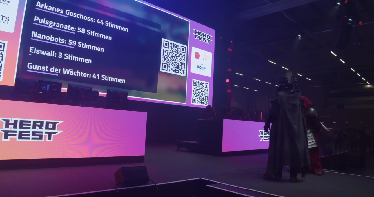 Beim diesjährigen HeroFest habe ich zusammen mit Troyhammaren ein einzigartiges, interaktives Bossfight-Erlebnis ins Leben gerufen, bei dem die Besucher aktiv mitbestimmen konnten. Über fünf packende Runden verteilt über das gesamte Event hatten die Teilnehmer die Möglichkeit, per Smartphone in Echtzeit abzustimmen, welche Aktionen die Fraktionshelden ausführen sollten. Da die Smartphones permanent mit dem Server verbunden waren, konnten die Spieler live Status-Effekte, Lebenspunkte und die Abstimmungsergebnisse direkt auf ihren Geräten verfolgen.